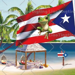 Red-white Stripes,Puerto Rican Flag,Frog,Ocean,Beach Summer,Palm Trees,Coconut Trees,Five Stars,Blue Triangle