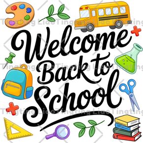 Back To School Season,Campus,Cartoon,Children's Fun,Bus,Schoolbag,Book,Magnifying Glass,Ruler,Scissors,Plant,Text,Welcome Back To School