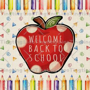 Back To School Season,Campus,Cartoon,Children's Interest,Color Pencil,Building Block,Apple,Wave Point,Text,WELCOME BACK TO SCHOOL,Linen