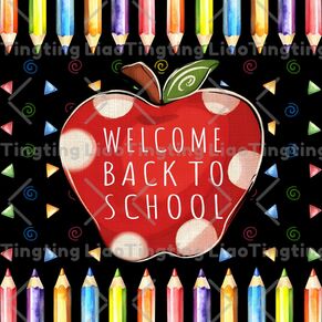 Back To School Season,Campus,Cartoon,Children's Interest,Color Pencil,Building Block,Apple,Wave Point,Text,WELCOME BACK TO SCHOOL,Black Background