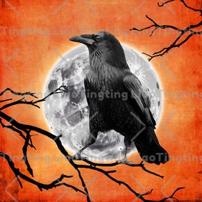 Halloween,Crow,Moon,Branches,Art,Retro,Decoration,Classic