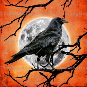 Halloween,Crow,Moon,Branches,Art,Retro,Decoration,Classic