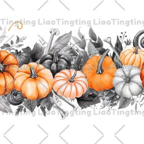 Halloween,Pumpkin,Skull,Country,Vintage,Watercolor
