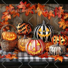 Halloween,Country,Watercolor,Maple Leaf,Plaid,Retro