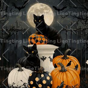 Halloween,Country,Vintage,Black Cat,Pumpkin