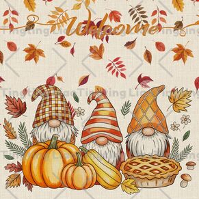 Autumn,Thanksgiving,Country,Watercolor Style,Gnome,Pumpkin,Retro,Maple Leaf
