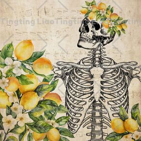 Lemon,Skull,Poinsettia,Flower,Decoration,Art,Vintage,Country