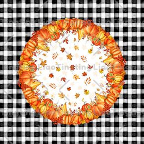 Autumn,Thanksgiving,Orange,Red,Pumpkin,Fallen Leaves,Black And White Plaid