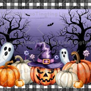 Halloween,Pumpkin,Candy,Hat,Ghost,Trees,Plaid,Bat,Wood