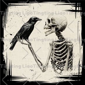 Halloween,Horror,Skeleton,Crow,Retro,Text