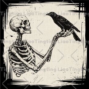 Halloween,Horror,Skeleton,Crow,Retro,Text