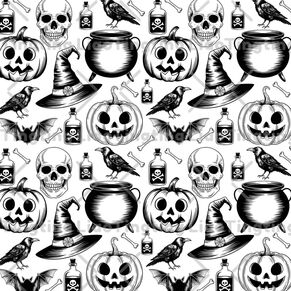 Halloween,Pumpkin,Skull,Hat,Bone,Bat,Potion,Crow,Cartoon