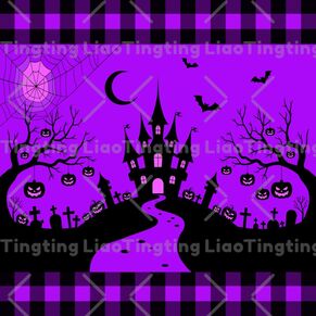 Halloween,Castle,Bat,Spider Web,Tombstone,Moon,Cartoon,Plaid