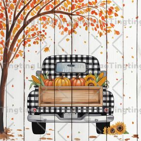 Autumn,Maple Leaf,Truck,Black And White Plaid,Pumpkin,Wood Pattern Background