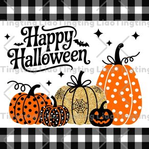 Halloween,Plaid,Pumpkin,Polka Dot,Spider Web,Bat,Cartoon,Text,Happy Halloween