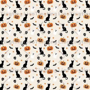 Halloween,Cat,Pumpkin,Ghost,Bat,Stars,Cream Background