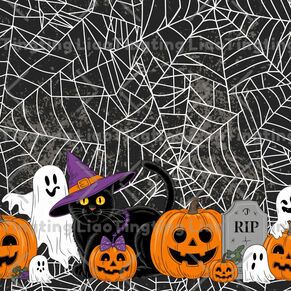 Halloween,Horror Atmosphere,Pumpkin,Tombstone,Spider Web,Ghost