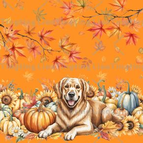 Autumn,Country,Pumpkin,Animal,Puppy,Watercolor Style,Maple Leaf,Sunflower