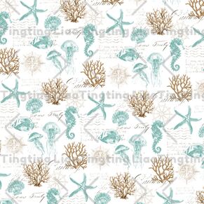 Hand drawn starfish, coral, jellyfish, shell, seahorse, tropical fish