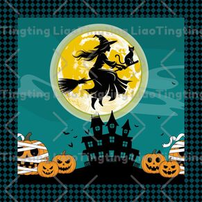 Autumn,Halloween,Witch,Cat,Art,Retro,Abstract,Silhouette,Moon