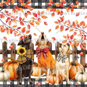Autumn,Dog,Bow,Sunflower,Pumpkin,Fence,Tree,Plaid