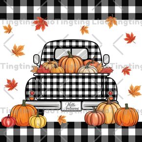 Autumn,Text,Truck,Plaid,Pumpkin,Maple Leaf,Hello Autumn