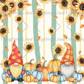 Autumn,Thanksgiving,Sunflower,Pumpkin,Striped,Gnome
