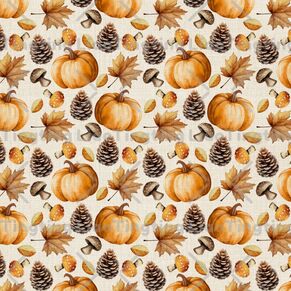 Autumn,Pumpkin,Maple Leaf,Pine Cone,Mushroom,Watercolor,Linen