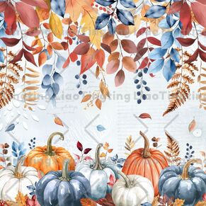 Thanksgiving,Autumn,Leaves,Plant,White Pumpkin,Blue Pumpkin,Orange Pumpkin,Light Blue Background