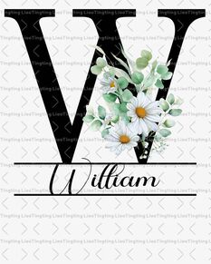 Letter Custom W,Vintage,Country,Flowers,Daisy