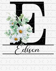 Letter Custom E,Vintage,Country,Flowers,Daisy