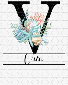 Custom Letter V,Ocean,Beach,Shell,Starfish,Coral