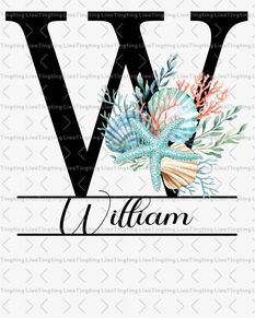 Custom Letter W,Ocean,Beach,Shell,Starfish,Coral
