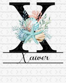 Custom Letter X,Ocean,Beach,Shell,Starfish,Coral