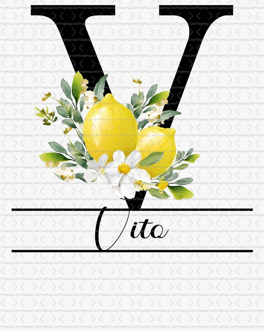 Letter Custom V,Vintage,Country,Fruit,Lemon,Pastoral
