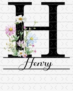 Letter Custom H,Vintage,Country,Flower,Wildflower,Pastoral
