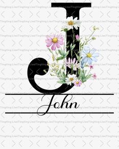 Letter Custom J,Vintage,Country,Flower,Wildflower,Pastoral