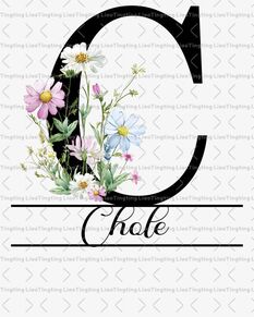 Letter Custom C,Vintage,Country,Flower,Wildflower,Pastoral