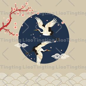 Japanese Style,Harmony,Japanese,Crane,Cherry Blossom,Wave Pattern