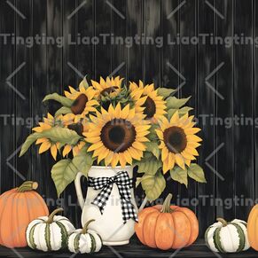 Thanksgiving,Autumn,Vase,Sunflower,Pumpkin,Wood Grain