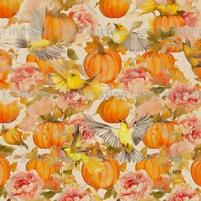 Autumn,Thanksgiving,Country,Pumpkin,Bird,Watercolor Style,Flowers