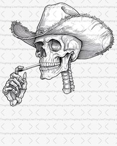 Hand drawn western cowboy skull