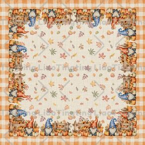 Autumn,Thanksgiving,Flowers,Pumpkin,Gnome,Wooden Fence,Watercolor,Country,Plaid