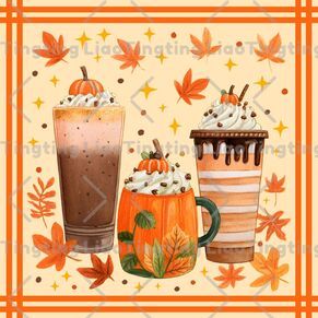 Autumn,Pumpkin Latte,Drink,Maple Leaf,Stars,Cute,Idyllic,Light Yellow Background