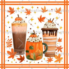 Autumn,Pumpkin Latte,Drink,Maple Leaf,Stars,Cute,Pastoral
