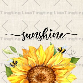 Watercolor Flowers,Sunflowers,Bees,Farmhouse,Farm,Country,Vintage Linen Bottom Sunshine