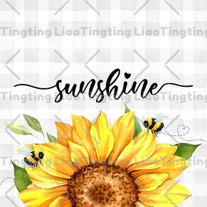 Watercolor Flowers,Sunflowers,Bees,Farmhouse,Farm,Country,Grey Check Sunshine