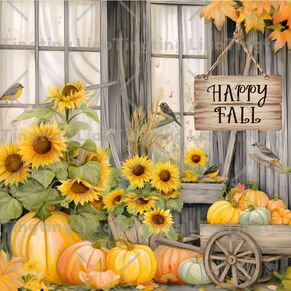 Autumn,Pumpkin,Sunflower,Bird,Text,HAPPY FALL
