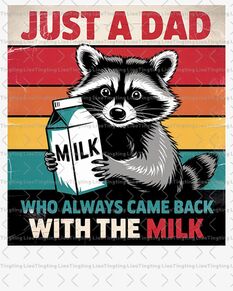 Funny raccoon and milk with the words JUST A DAD WHO ALWAYS CAME BACK WITH THE MILK 3
