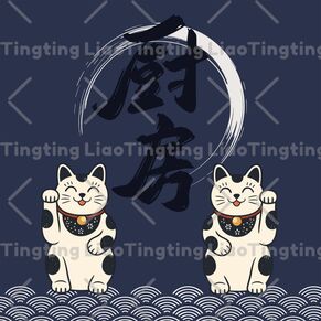 Japanese Style,Harmony,Japanese,Cat,Kitchen,Wave Pattern